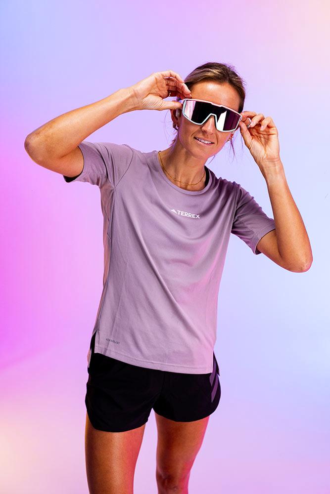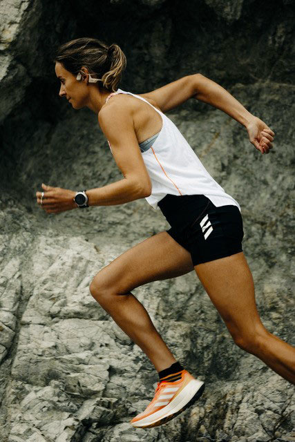 The young woman embodies both sporting performance and creativity. A trail runner and artist, she is admired for her excellence on mountain trails, while bringing a personal and artistic touch to the world of sport.
